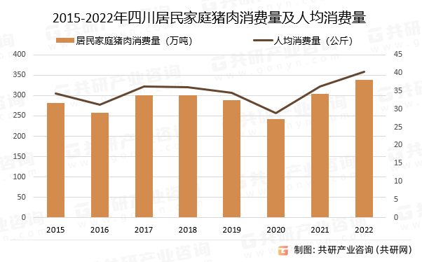 四川人均猪肉消费量从2015年的34。4公斤波动增加至2022年的40。4公斤,增加了6公斤,增幅约为17。44%,年均复合增加率约为2。32%;居平易近家庭猪肉消费量从281。94万吨波动增加至338。31万吨,增加了56。37万吨,增幅约为19。99%,年均复合增加率约为2。64%。