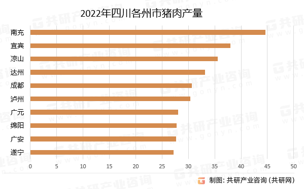 2022年,四川出产猪肉478万吨,全省猪肉产量排名前三的州市顺次为南充、宜宾以及凉山;此中,南充猪肉产量为44。61万吨,正在全省猪肉产量中所占的比沉约为9。33%;宜宾猪肉产量为37。97万吨,正在全省所占的比沉约为7。94%;凉山猪肉产量为35。57万吨,所占比沉约为7。44%。