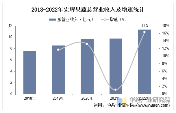 宏辉果蔬股份无限公司成立于1992年,由原汕头经济特区宏辉食物无限公司全体变动设立而成,是农业财产化国度沉点龙头企业。宏辉果蔬旗下具有“宏辉果蔬”“山公”“十八臻”“丰收哥”“喷鼻”等出名品牌,正在全国设立了9个仓储加工配送核心并配套冷链设备,采用GLOBALGAP、ISO22000(HACCP)、ISO9001等国际质量系统,将产质量量取平安办理深切到食物财产链的各个环节,成立从泉源到成品的全面质量办理系统。2022年,宏辉果蔬实现总停业收入1元,同比增加16。27%;此中,毛利率是4。99%。